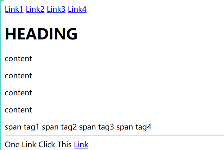<span>span tag1</span> <span>span tag2</span> <span>span tag3</span> <span>span tag4</span> <hr> <span>One Link Click This <a href="#">Link</a></span> </body> </html>