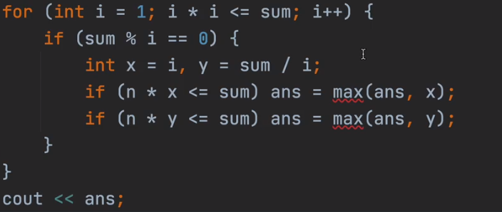if (x % i == 0 && x / i >= n)